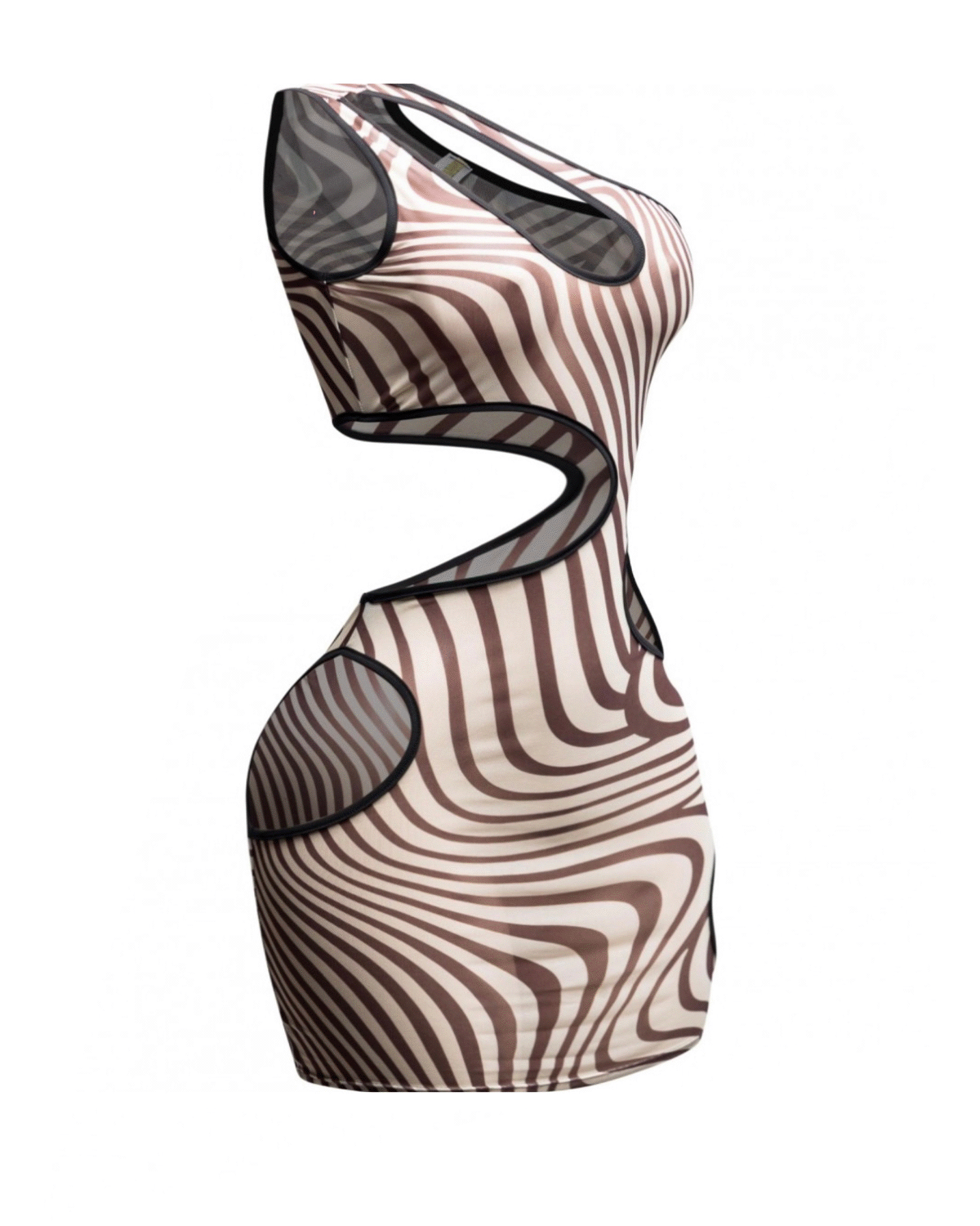 Dare to stand out and turn heads in our Z Print Dress, a Zebra Printed Mesh Cut-Out Asymmetric Mini Dress, with a lightweight breathable semi-sheer mesh fabric.